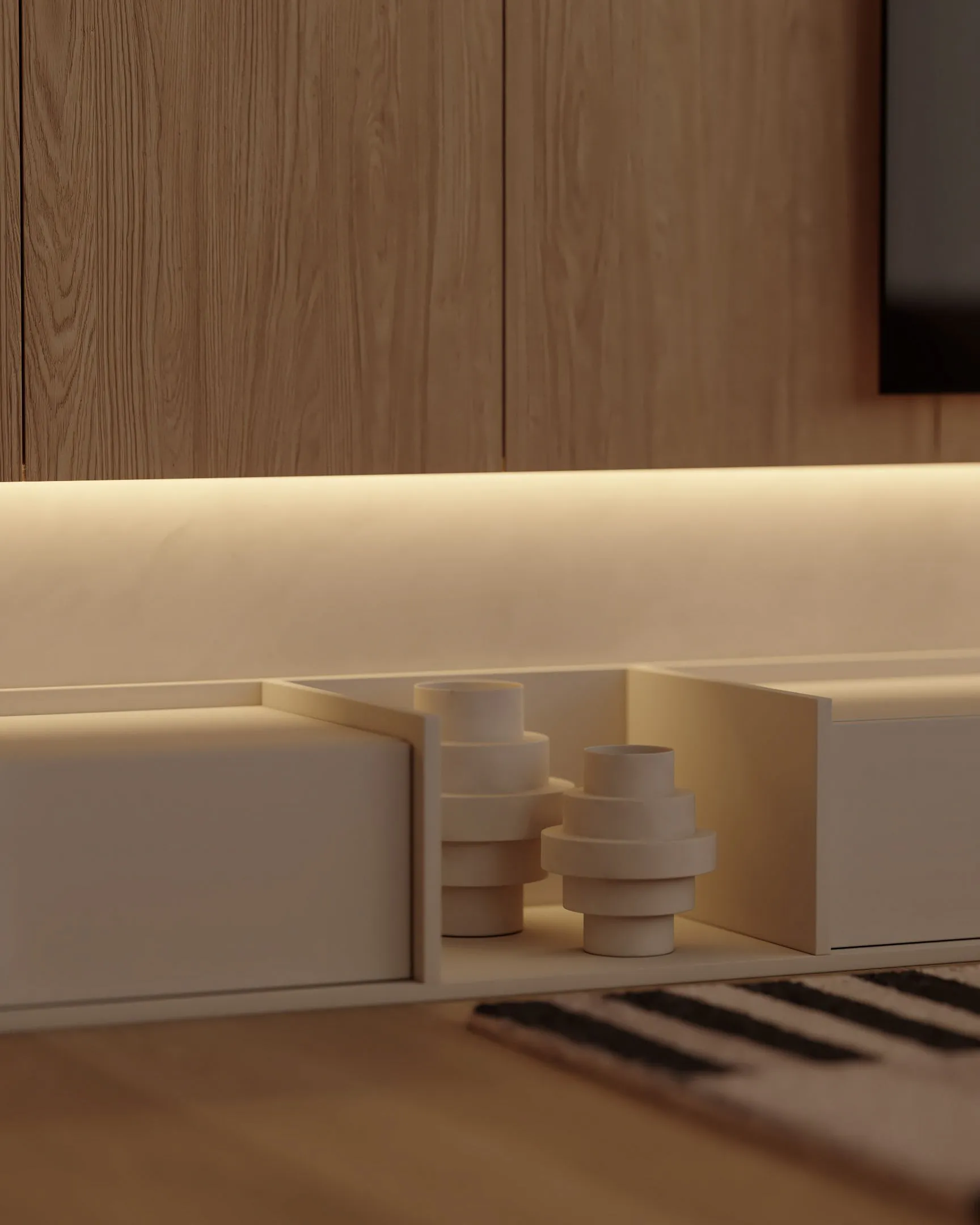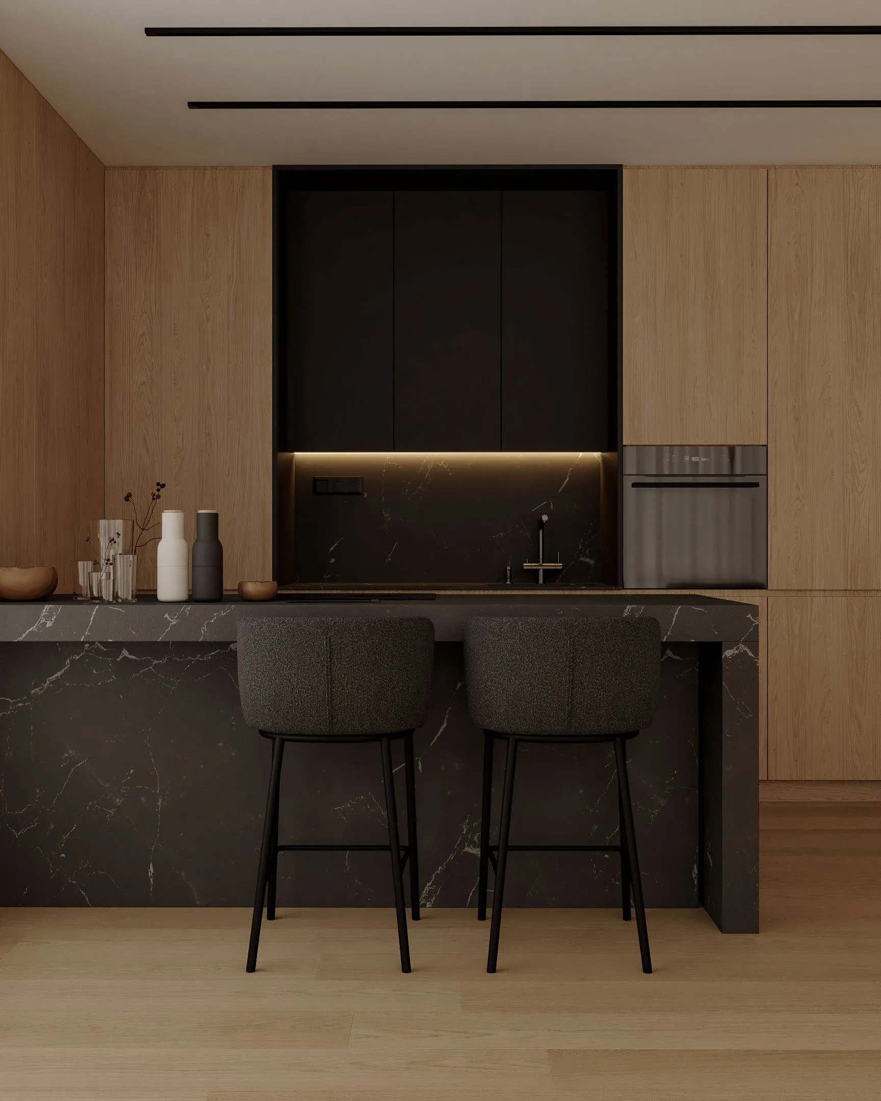 Projekt CUKROVAR vznikol v novej trnavskej rezidenčnej štvrti, ktorá vyrastá na mieste historického priemyselného areálu. Zadaním bolo vytvoriť interiér, ktorý spája teplú prirodzenosť dreva s odvahou tmavých akcentov … a výsledkom je priestor, kde sa tieto dva svety stretávajú v každej miestnosti.