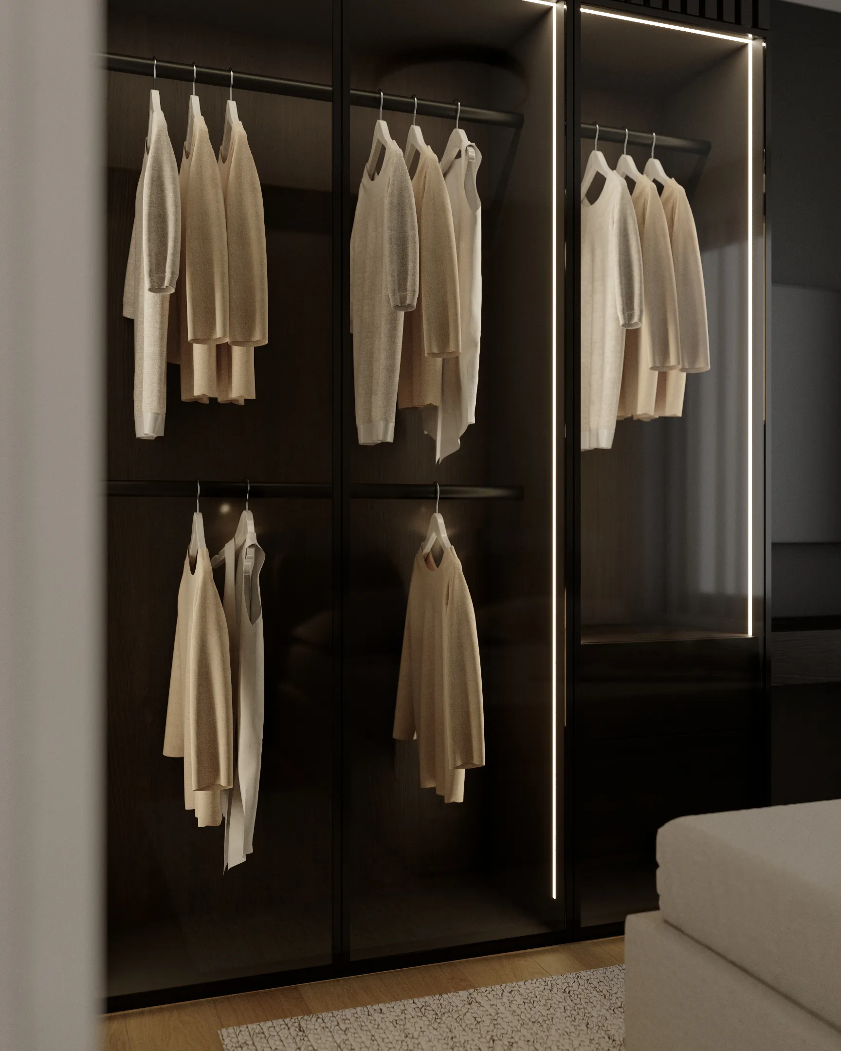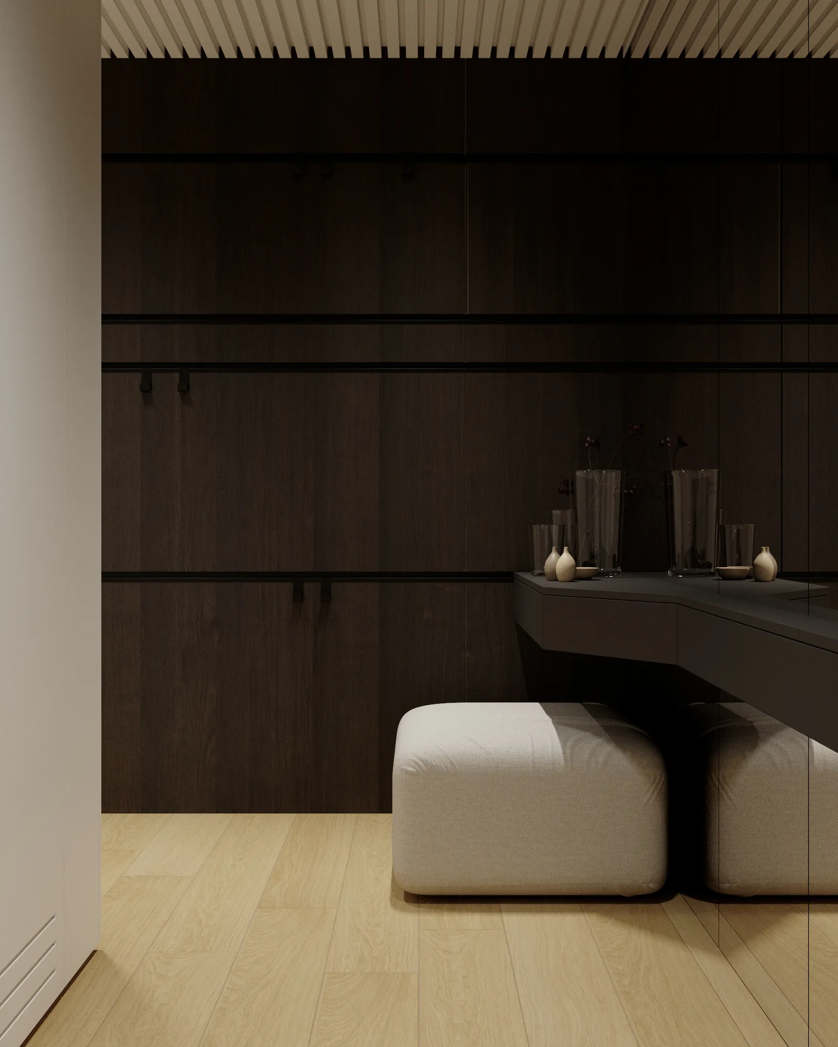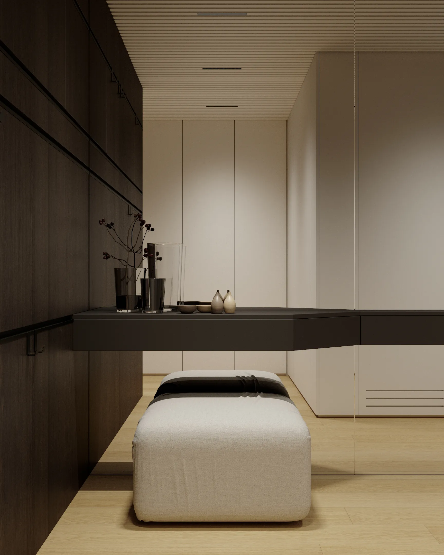 Nahliadnite s nami do interiéru SKYPARK. Nájdete v ňom poriadne veľké zrkadlové plochy, unikátnu vešiakovú stenu, super atypický nábytok na mieru, a hlavne poriadne veľký spací kút, ktorý poskytuje skutočne zážitkové ranné prebúdzanie.
